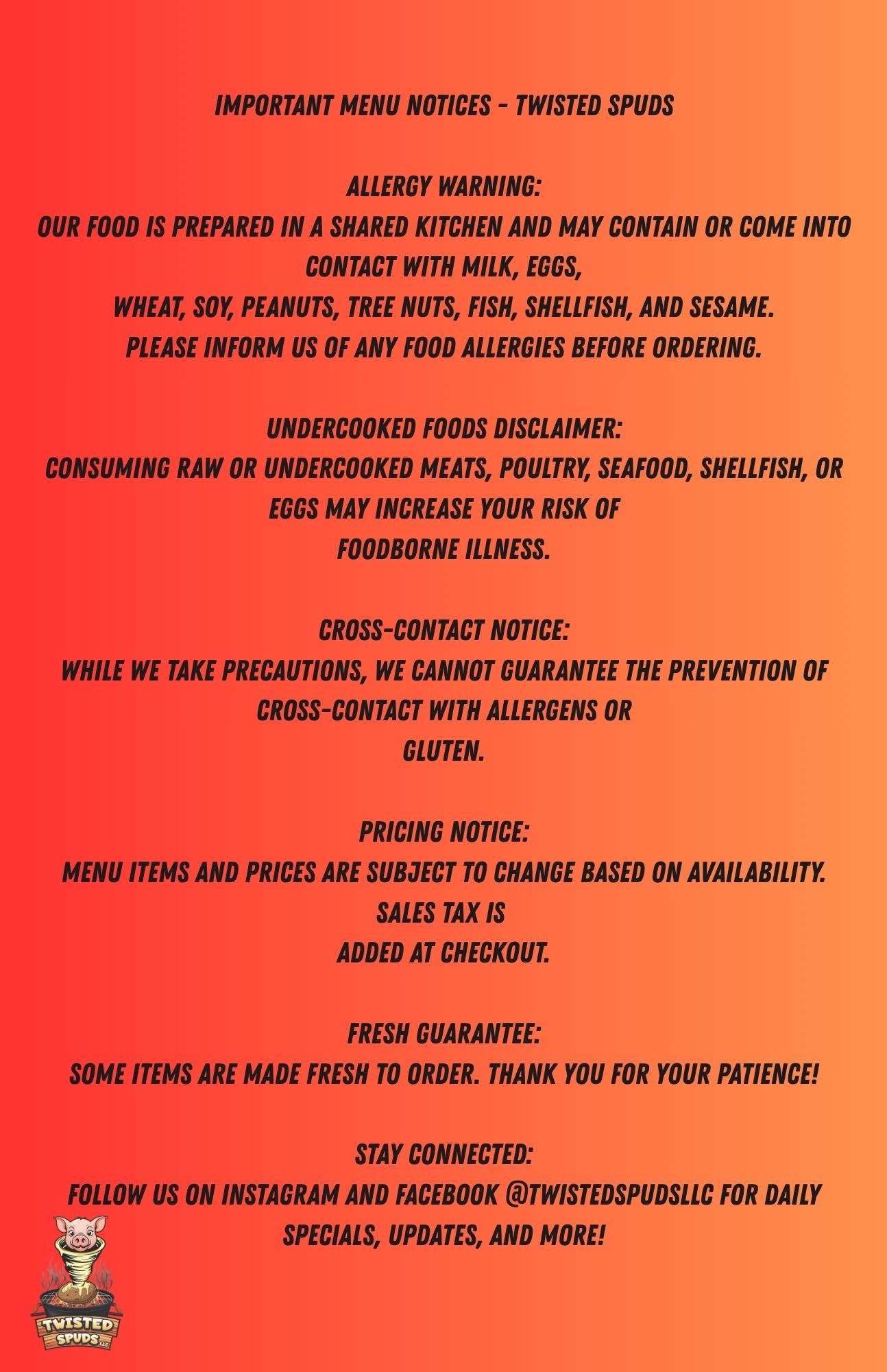 Our Current December 2025 Menu! Menu and pricing are subject to change without notice.